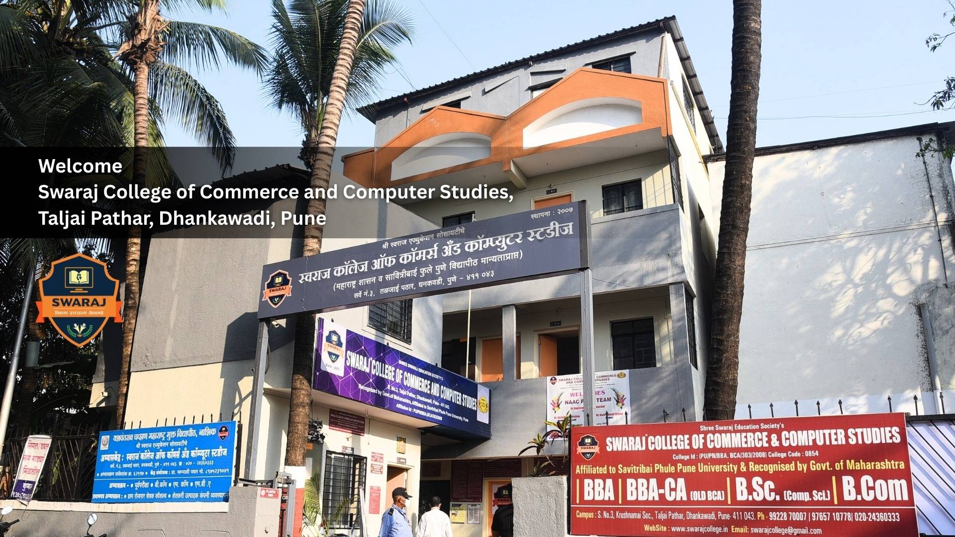 Swaraj College of Commerce and Computer Studies, affiliated with Savitribai Phule Pune University (SPPU), was established in 2008 by Shree Swaraj Education Society (S.S.E.S.) with the aim of providing high-quality education. The selfless work put in by the devoted teachers and staff enabled the SSES to carve its own niche in the field of education. Since inception S.S.E.S. has catered to the changing needs of the society without compromising on quality and its prime objective. S.S.E.S. has made fundamental contribution in the field of management, commerce, information technology etc.